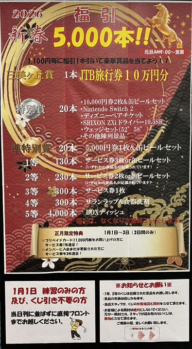※1月1日(木)のみ打ち放題はございませんのでご了承下さい。